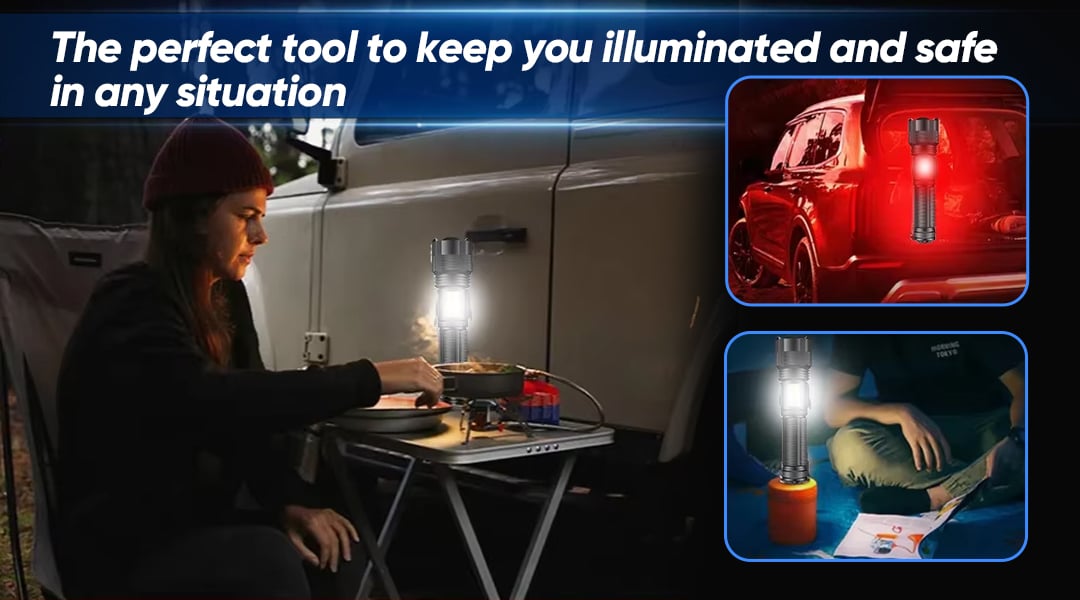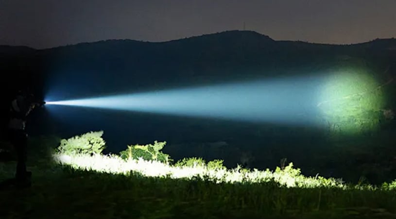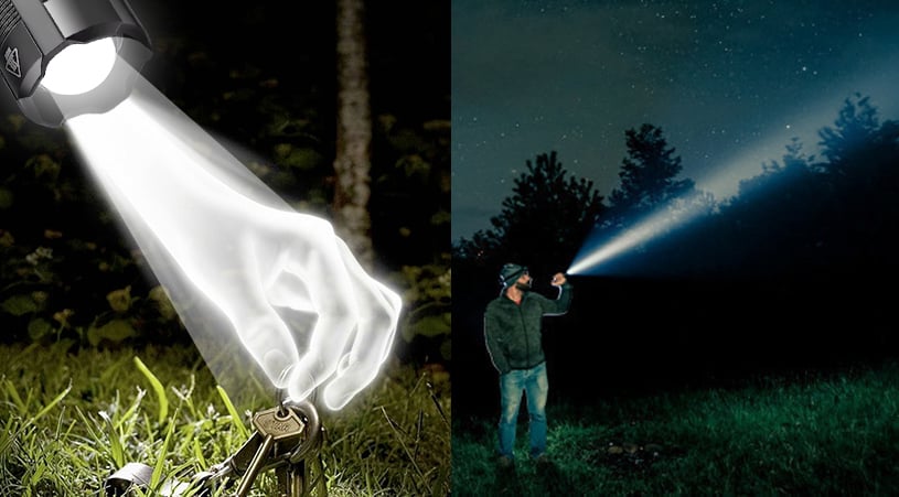 High lumens flashlight can generates an ultra-high output up to 12000 lumens, sweeps bright light over the length of about two football fields and reaches nearly 550 yard.